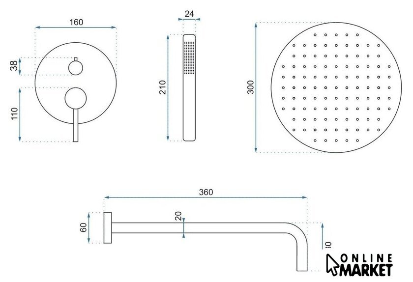 | Диаметр (ширина) верхнего душа | 300 мм |