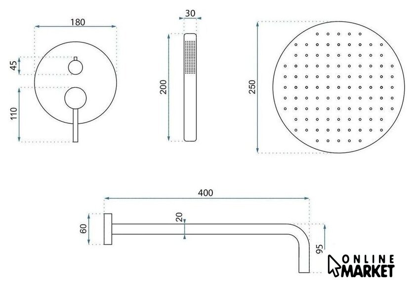 | Форма верхнего душа | круглая |