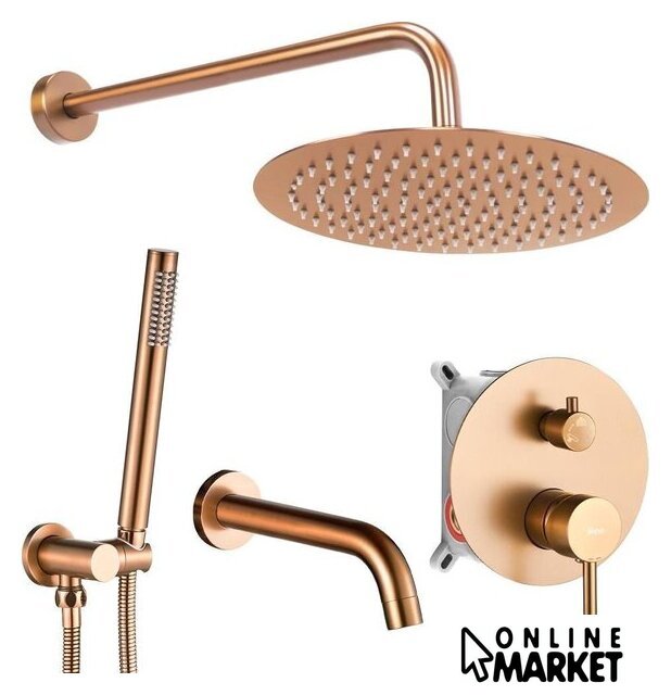 | Комплектация | верхний душ, ручной душ (лейка), держатель лейки, шланг, смеситель, излив для ванны |
