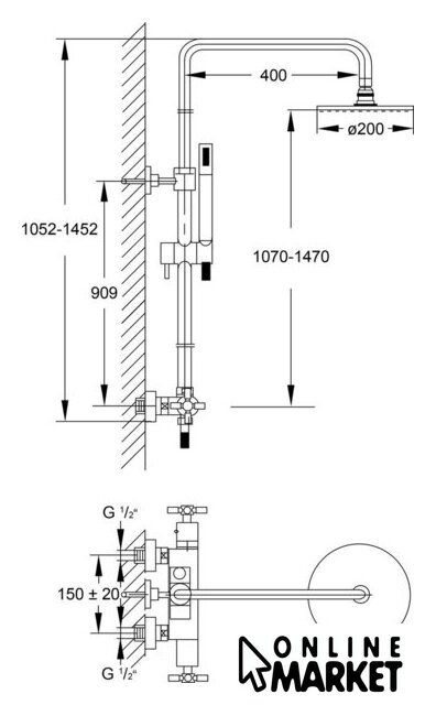 | Диаметр (ширина) верхнего душа | 200 мм |
