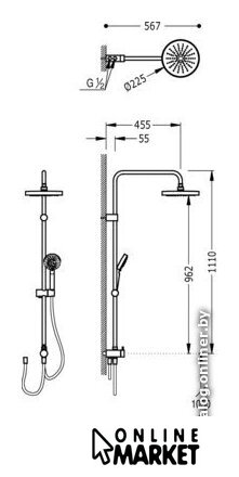 | Диаметр (ширина) верхнего душа | 225 мм |