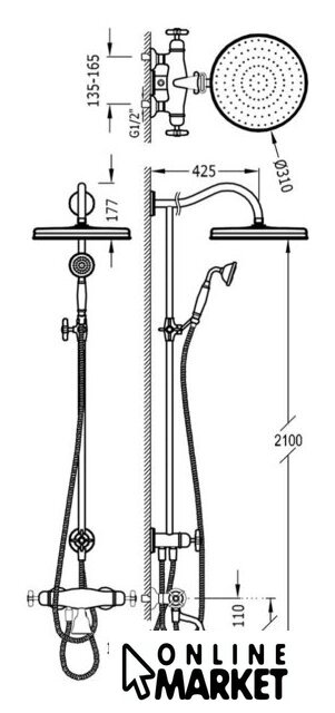 | Диаметр (ширина) верхнего душа | 310 мм |