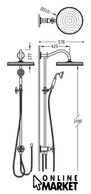 | Диаметр (ширина) верхнего душа | 310 мм |