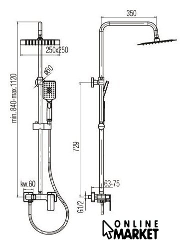 | Диаметр (ширина) верхнего душа | 250 мм |