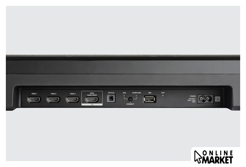 Комплект поставки | - звуковая панель- беспроводной сабвуфер- пульт ДУ- батарейки для пульта ДУ (2xAAA)- кабель HDMI- кабель питания- комплект для настенного крепежа- документация |