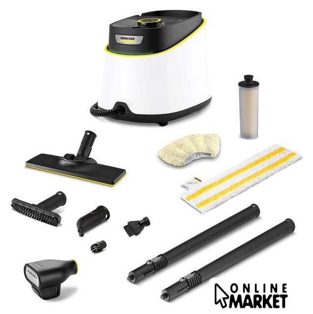 Дополнительные насадки и приспособления | - Универсальная салфетка для пола EasyFix- Обтяжка из микроволокна для ручной насадки- Антинакипин (картридж)- Точечное сопло- Ручная насадка- Круглая щетка, черная- Щетка для очистки швов- Насадка для пола: EasyFix- Удлинительные трубки (2 х 0,5 м) |