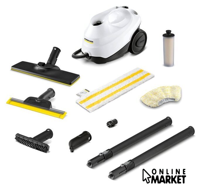 Дополнительные насадки и приспособления | - Универсальная салфетка для пола EasyFix: 1 шт.- Обтяжка из микроволокна для ручной насадки: 1 шт.- Антинакипин (картридж)- Точечное сопло- Ручная насадка- Круглая щетка, черная: 1 шт.- Насадка для пола: EasyFix- Удлинительные трубки (2 х 0,5 м) |