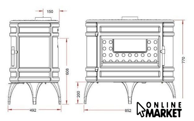 | Диаметр дымохода | 150 мм |