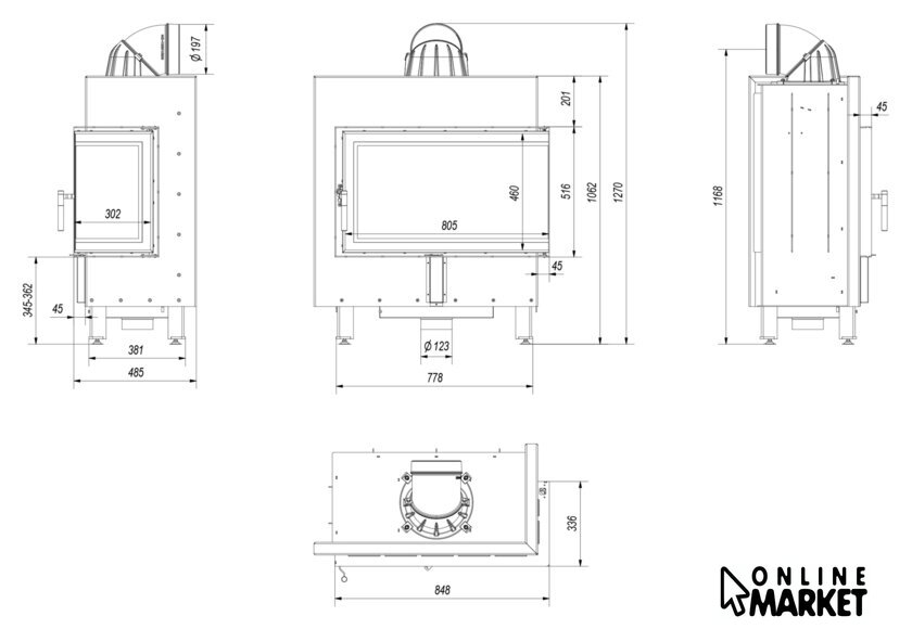 | Выход дымохода | верхний, задний |