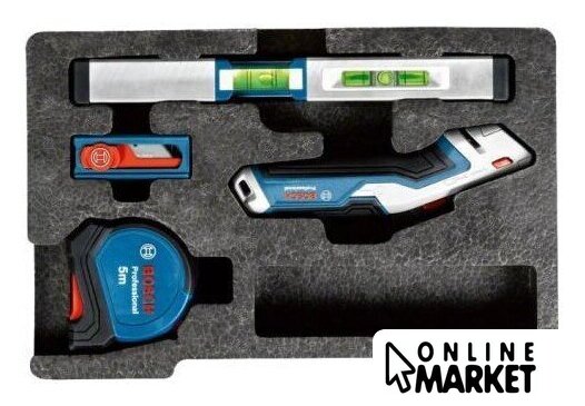 | Комплектация | - Рулетка 5м (1600A016BH), - Сменные лезвия, 10 шт (1600A016ZH), - Универсальный ковровый нож с выдвижным лезвием (1600A01V3H), - Ватерпас 25 см, магнитный (1600A016 |