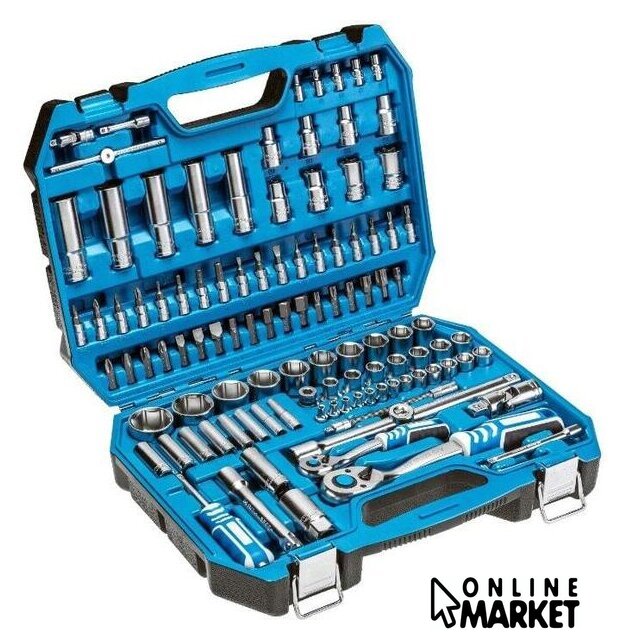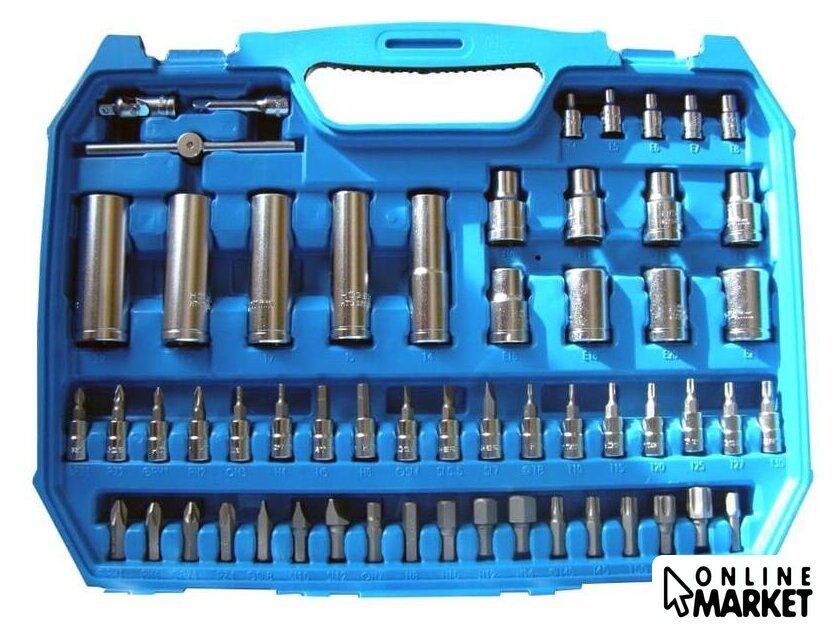 | Комплектация | - Биты 1/4”: SL4/ SL5.5/ SL7 мм, PH1/ PH2, PZ1/ PZ2, T8/ T10/ T15/ T20/ T25/ T27/ T30, H3/ H4/ H5/ H6- Головки 1/4”: 4/ 4.5/ 5/ 5.5/ 6/ 7/ 8/ 9/ 10/ 11/ 12/ 13/ 14 мм,- Головки удлиненные 1/4”: 6/ 7/ 8/ 9/ 10/ 11/ 12/ 13 мм- Головки Torx 1/4”: E4/ E5/ E6/ E7/ E8,- Шарнир универсальный 1/4”, Вороток Т-образный 1/4”, 115 мм- Держатель отверточный 1/4”, 150 мм,- Удлинители 1/4”, 50 и 100 мм, Удлинитель гибкий 1/4”, 150 мм- Переходник 1/4”, 30 мм, Трещотка 1/4”, 72 зуба,- Шестигранные ключи: 1.27/ 1.5/ 2/ 2.5 мм- Головки 1/2”: 10/ 11/ 12/ 13/ 14/ 15/ 16/ 17/ 18/ 19/ 20/ 21/ 22/ 24/ 27/ 30/ 32 мм- Головки удлиненные 1/2”: 14/ 15/ 17/ 19/ 22 мм, Головки Torx 1/2”: E10/ E11/ E12/ E14/ E16/ E8/ E20/ E24- Отверточные биты 5/16”, 30 мм: SL8/ SL10/ SL12 мм, PH3/ PH4, PZ3/ PZ4, T40/ T45/ T50/ T55/ T60, H7/ H8/ H10/ H12/ H14- Торцевые головки для свечей 1/2”: 16/ 21 мм, Шарнир универсальный 1/2”, Удлинители 1/2”: 125/ 250 мм- Переходник 1/2”, Трещотка 1/2”, 72 зуба, Держатель 1/2” для наконечников 5/16” |