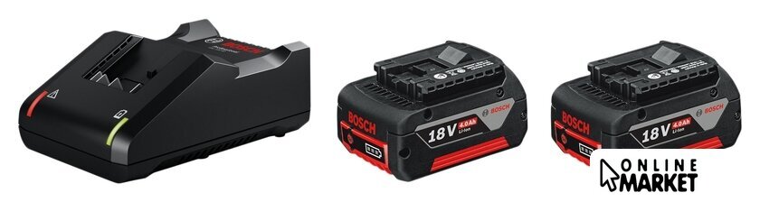 Комплектация | - 2 аккумулятора GBA 18V 4.0Ah- Быстрозарядное устройство GAL 18V-40 Professional |