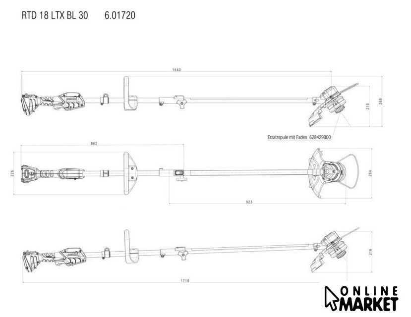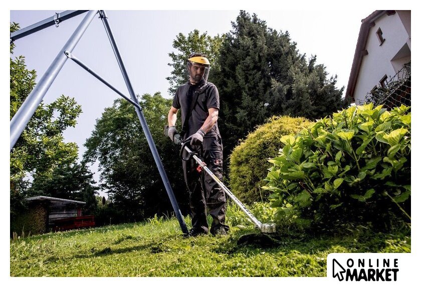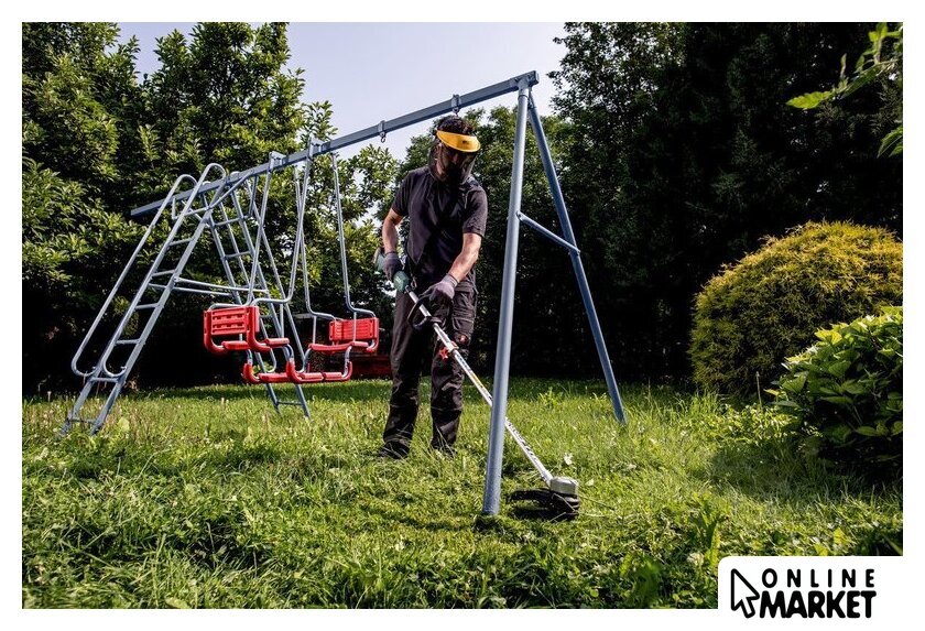 | Комплектация | - Ручка-скоба, - Наплечный ремень, - Защитный кожух, - Катушка с двумя режущими нитями (нить Ø 2 мм, 4 м), - Торцовый шестигранный ключ, - Крестовая отвертка |