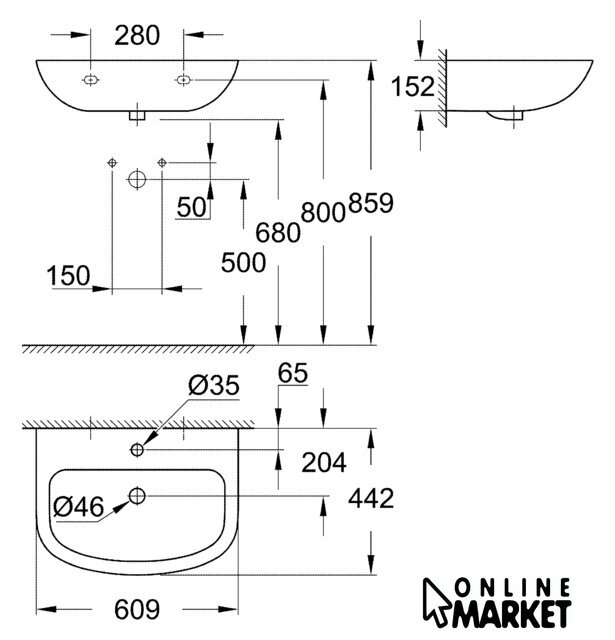 | Отверстие под смеситель | 1 шт. |