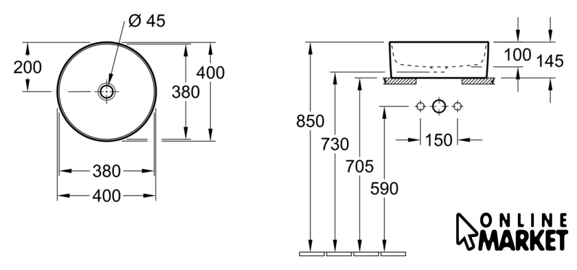 | Отверстие под смеситель | нет |