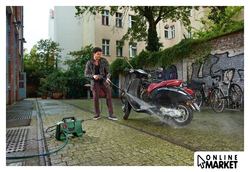Комплектация | - Пистолет-пульверизатор Bosch;- Трубка;- Шланг высокого давления 5 м;- Регулируемая распылительная насадка;- Поворотная насадка;- Насадка для нанесения моющего средства под высоким давлением, 450 мл;- Водяной фильтр. |